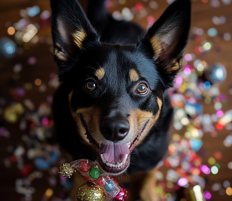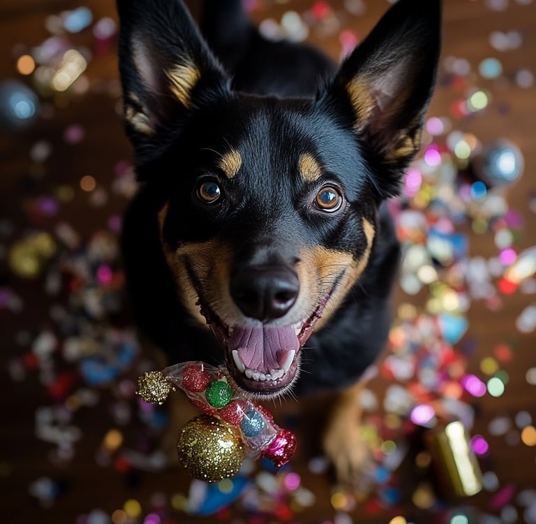 Lors du réveillon, c’est très souvent la fête et les cotillons en font parties. Faites attention que vos chiens n’ingèrent pas ces derniers. Il y a de multiples risques dont le plus grave serait une occlusion intestinale. Pour les feux d’artifices d’extérieur et d’intérieur beaucoup de chiens en sont phobiques, pensez à votre chien !!!